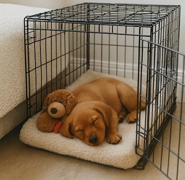 Crate training teaches your puppy that their crate is a positive, calm place — not a punishment. Dogs are naturally den animals, and a properly sized crate can feel like a little bedroom just for them.